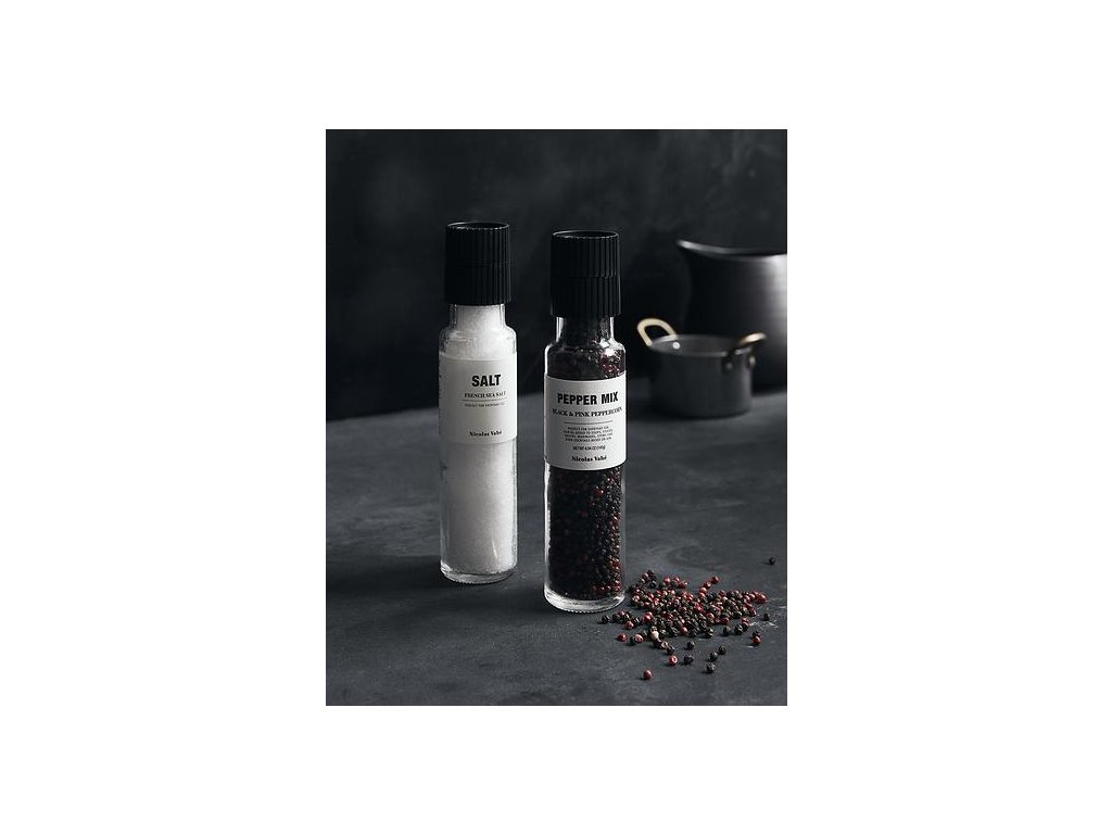 The gift box Everyday essentials with salt & pepper contains French sea salt (which is a true classic) and a pepper mix of black and pink peppercorns. The glass containers are equipped with ceramic grinders and every foodie knows that the taste of dishes is much better if you season them with freshly ground spices. Both spices are ideal for everyday use, added both during cooking or as finishing touches.