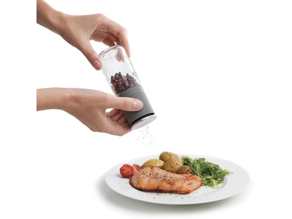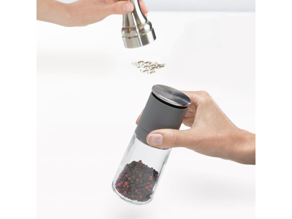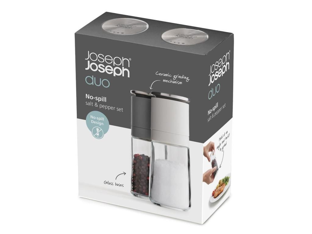 - Joseph Joseph DUO salt and pepper grinder set offers a smart seasoning solution without the mess on your countertop or dining table.