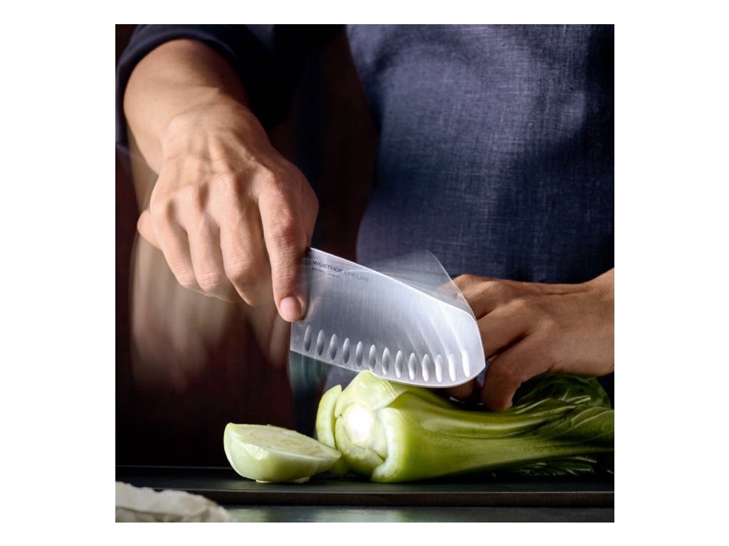 The slight curve of the blade makes the Chai Dao ideal for cutting, chopping and dicing. The hollow serrated blade creates air pockets that prevent extra thin or soft slices from sticking to the blade. The knife is part of the Classic series, in which you will find knives forged from a single piece of high-quality steel in a lightweight design that makes the blade more flexible and reduces fatigue when slicing. Each blade is laser controlled and exceptionally sharp. The knives are equipped with an ergonomically shaped handle with three rivets. For hygiene reasons, there is no gap between the handle and the steel.