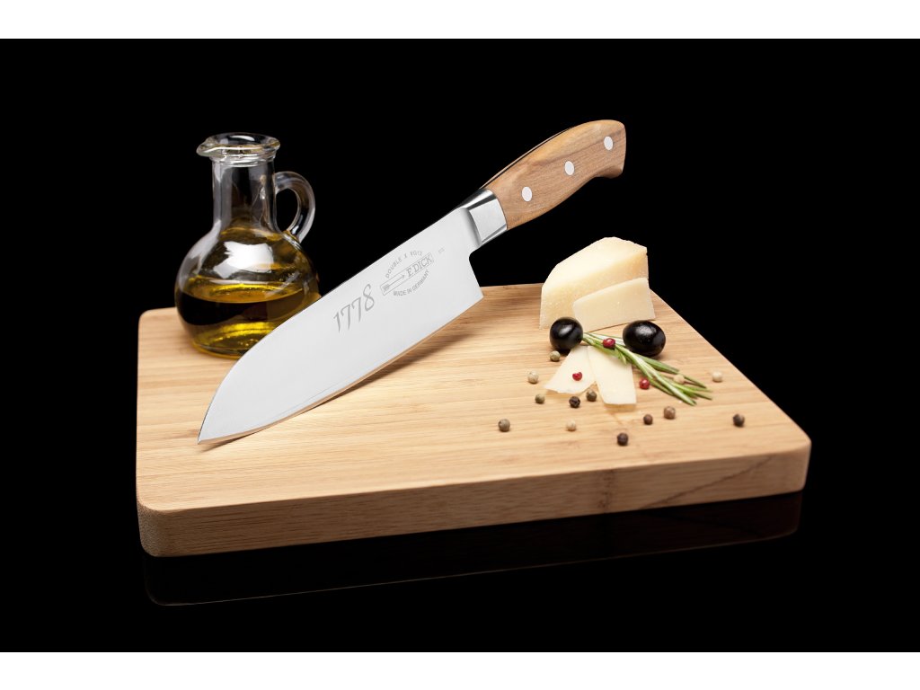 Forged, limited anniversary series: the core of the knives of this exceptional series consists of very thin layers of highly alloyed "Double X VG 12" carbon steel with extreme hardness from 61˚ HRC. The result is a particularly efficient cut and a significant extension of the blade life. The layered stainless steel core is food-friendly. All knives in the 1778 series are ground and dressed by hand and the handle and blade are also crafted by Dick specialists.