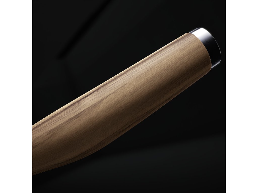 - The elegant transition between the wooden handle and the steel ensures not only aesthetic harmony, but also a comfortable transition without sharp edges.