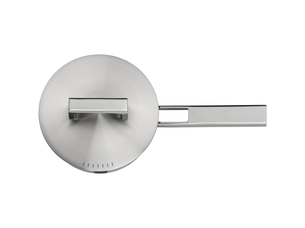 - The double-walled stainless steel pot lid is equipped with a hidden steam vent, which is suitable for use with side-mounted extractor hoods.