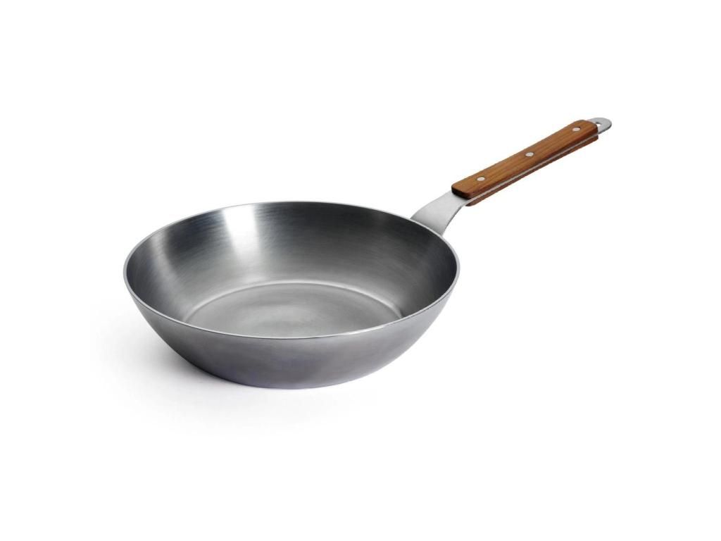 - The deep WOLL CARBON STEEL sauté pan with a diameter of 28 cm and a volume of 3.1 liters offers ample space for preparing sauces, meats, and larger portions of food.