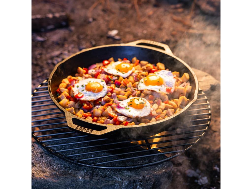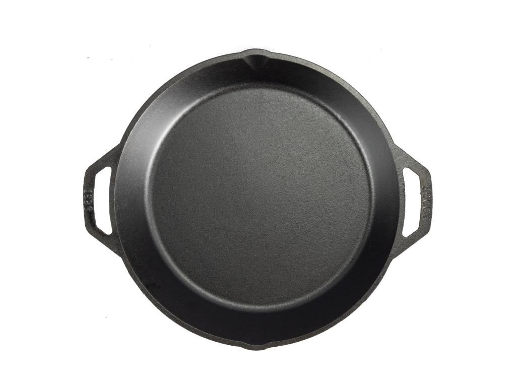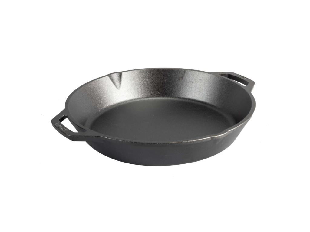 - The cast iron pan Lodge with a diameter of 34 cm with two handles is a powerful helper for everyday cooking and serving directly to the table.