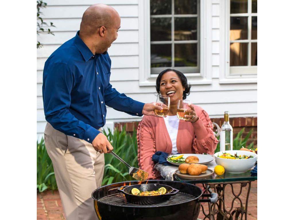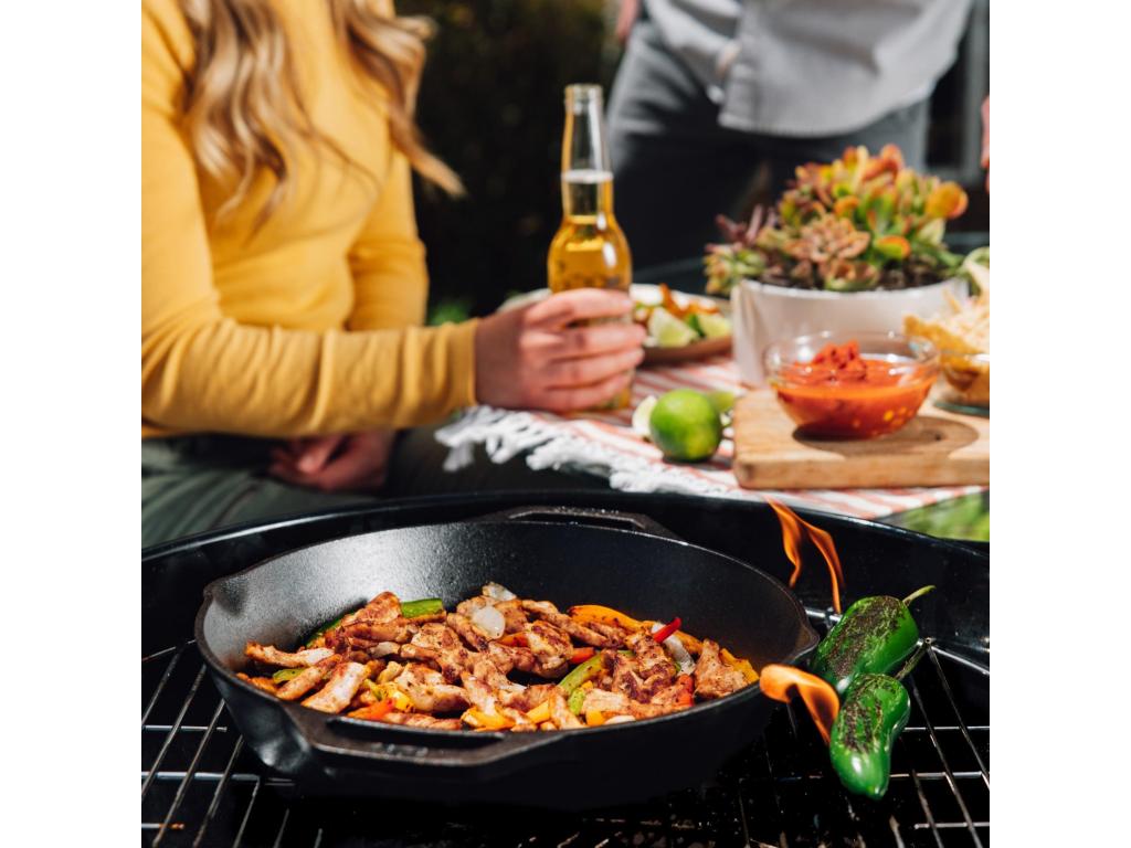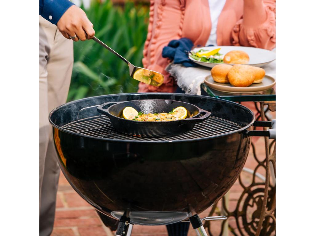 - The massive cast iron guarantees excellent heat accumulation, thanks to which the dishes acquire a rich flavor and a perfect grilling result.