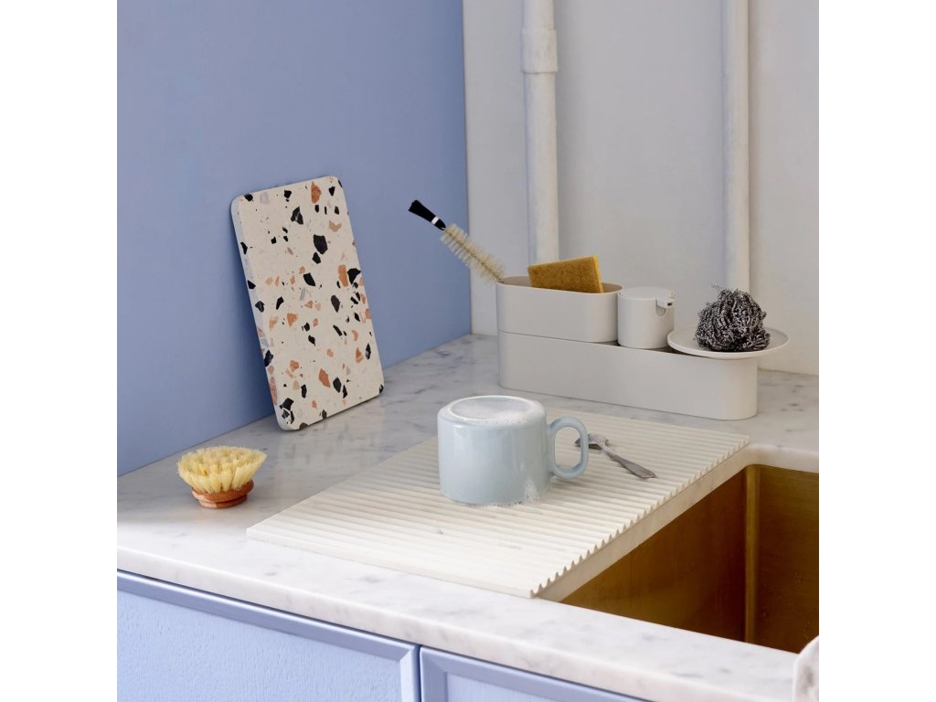- made of terrazzo material, which gives each piece a unique and lively look thanks to the colourful details