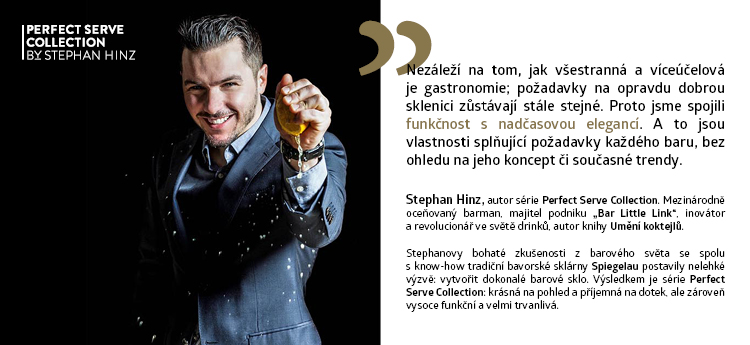 Spiegelau has created a unique range of glasses for those who want to maintain an exceptional standard in their private and professional life against the backdrop of today's stylish beverage culture. The individual glasses from the Perfect Serve Collection have been developed in collaboration with internationally renowned and award-winning bartender Stephan Hinz to optimally accompany every classic, trendy and funky drink and meet the demands of modern bars.