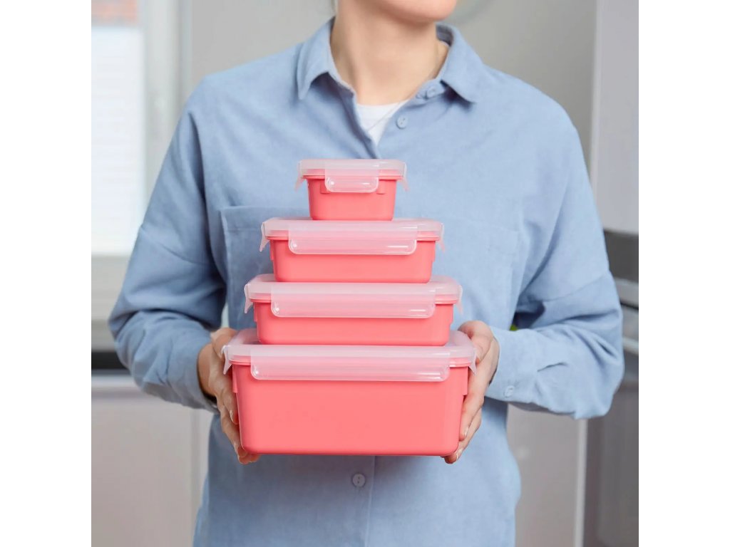 Food storage container MASTER SEAL COLOUR EDITION N1030910 , set of 4 pcs, coral red, plastic, Tefal