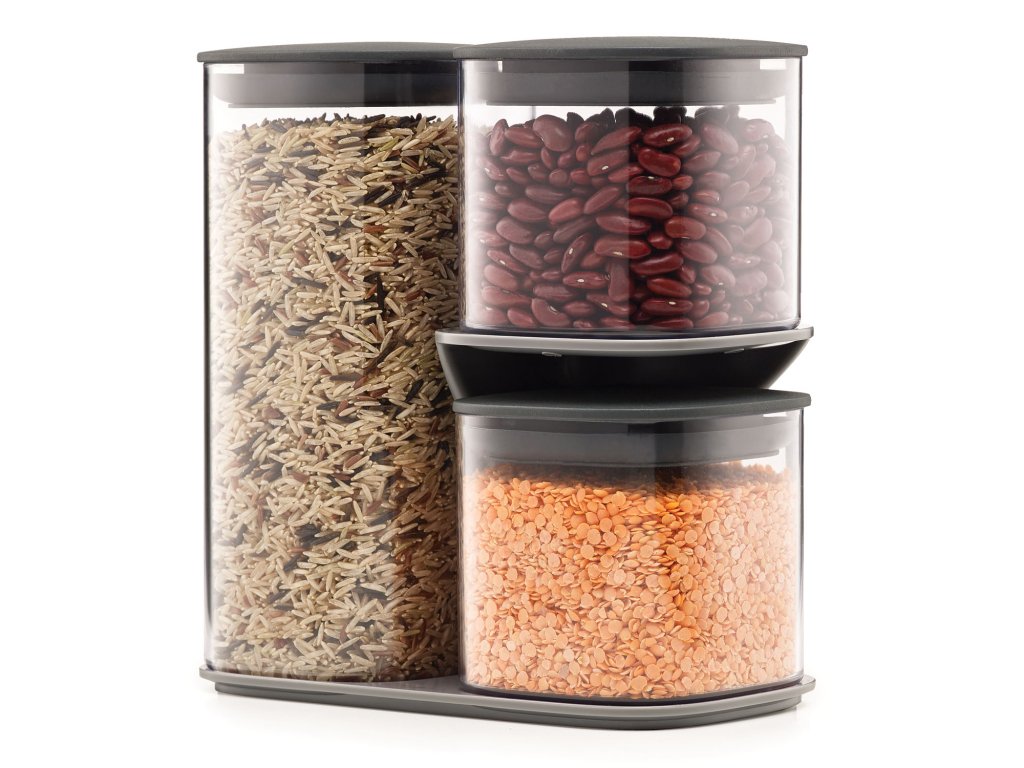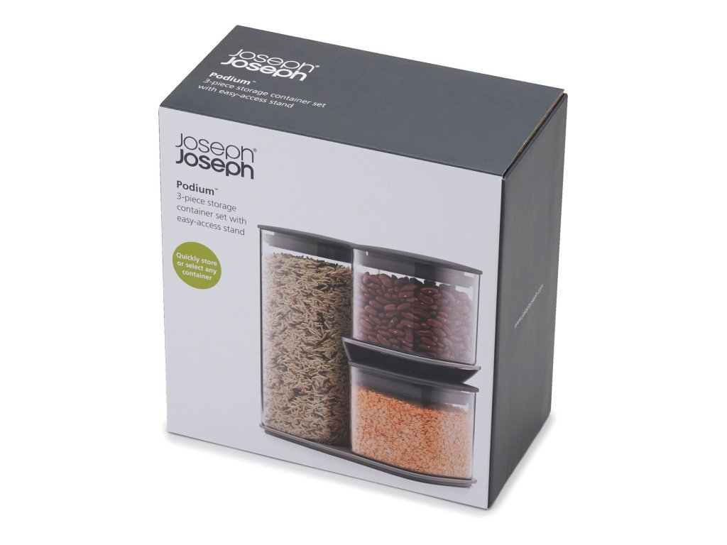Kitchen storage jar PODIUM 3, set of 3 pcs, with a stand, Joseph Joseph