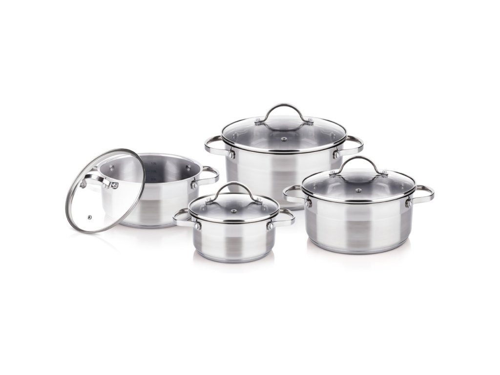 The pots are made of high quality stainless steel, which is hygienic, corrosion resistant, does not catch smells or tastes, easy to maintain and clean. The thick sandwich bottom allows use on all types of cookers, including induction. Elegant handles for comfortable and safe handling. The pots are fitted with lids made of durable glass. The lids contain a steam vent. Dishwasher safe. |