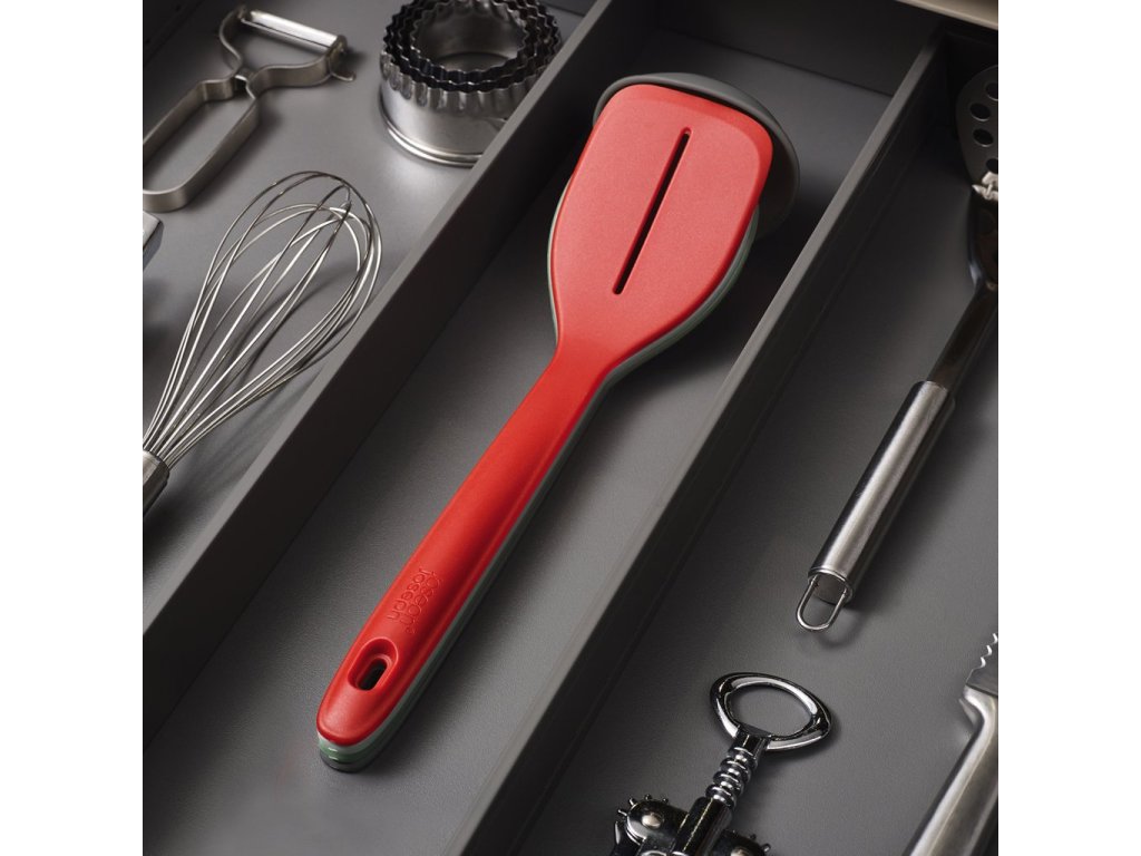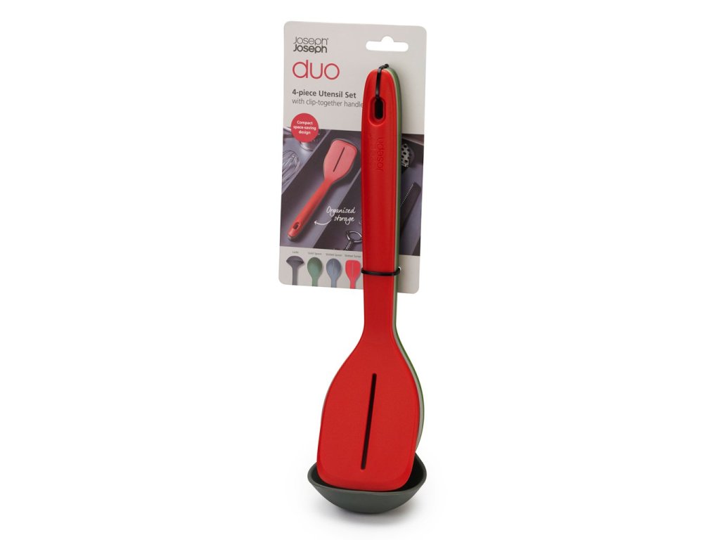 Duo is Joseph Joseph's innovative range of kitchen essentials that brings ingenious solutions to every kitchen. The range is carefully designed with an emphasis on simplicity, innovation, functionality and quality. Each product in this range is made from high quality materials and in a wide range of colours, so you can match them to your interior or other kitchen accessories and utensils. The range includes, for example, this stackable set of kitchen utensils - cooker, perforated cooker, perforated turner and ladle, ideal for storing in a drawer.