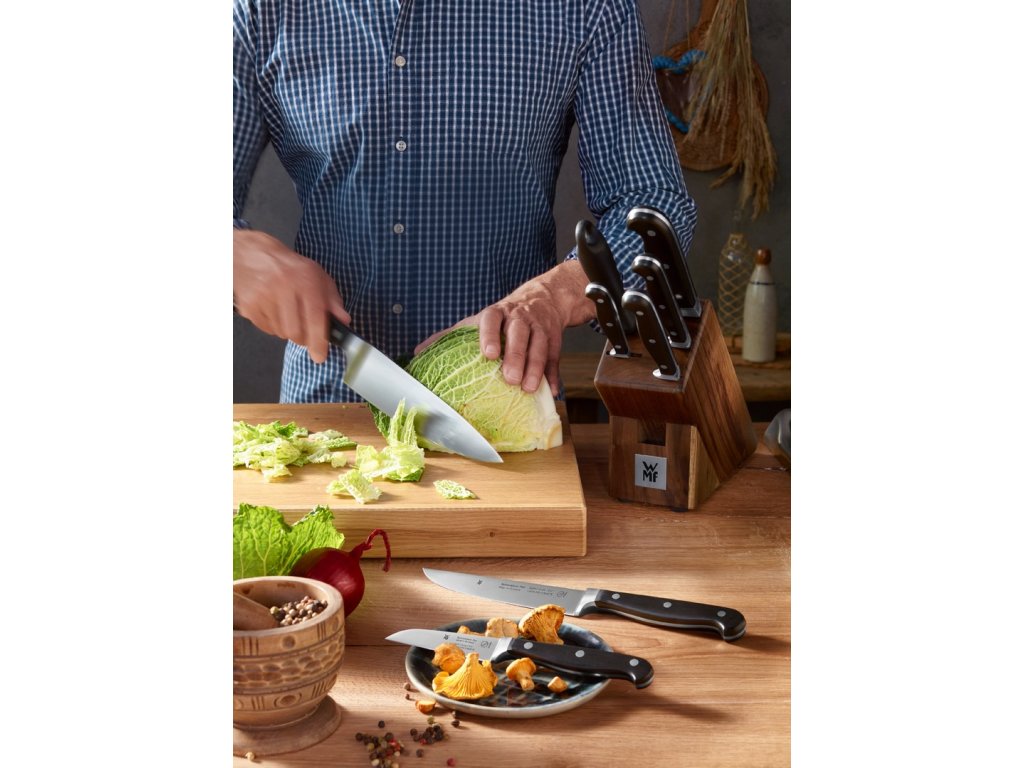 The Spitzenklasse Plus series of knives from the German company WMF continues the traditional Spitzenklasse series, which is a classic among kitchen knives. The riveted handles made of special, high-quality plastic have rounded edges and are very comfortable to grip, unlike the previous series. It goes without saying that such high-quality knives also have perfect bonding of the individual parts, which prevents the trapping of deposits and bacteria.