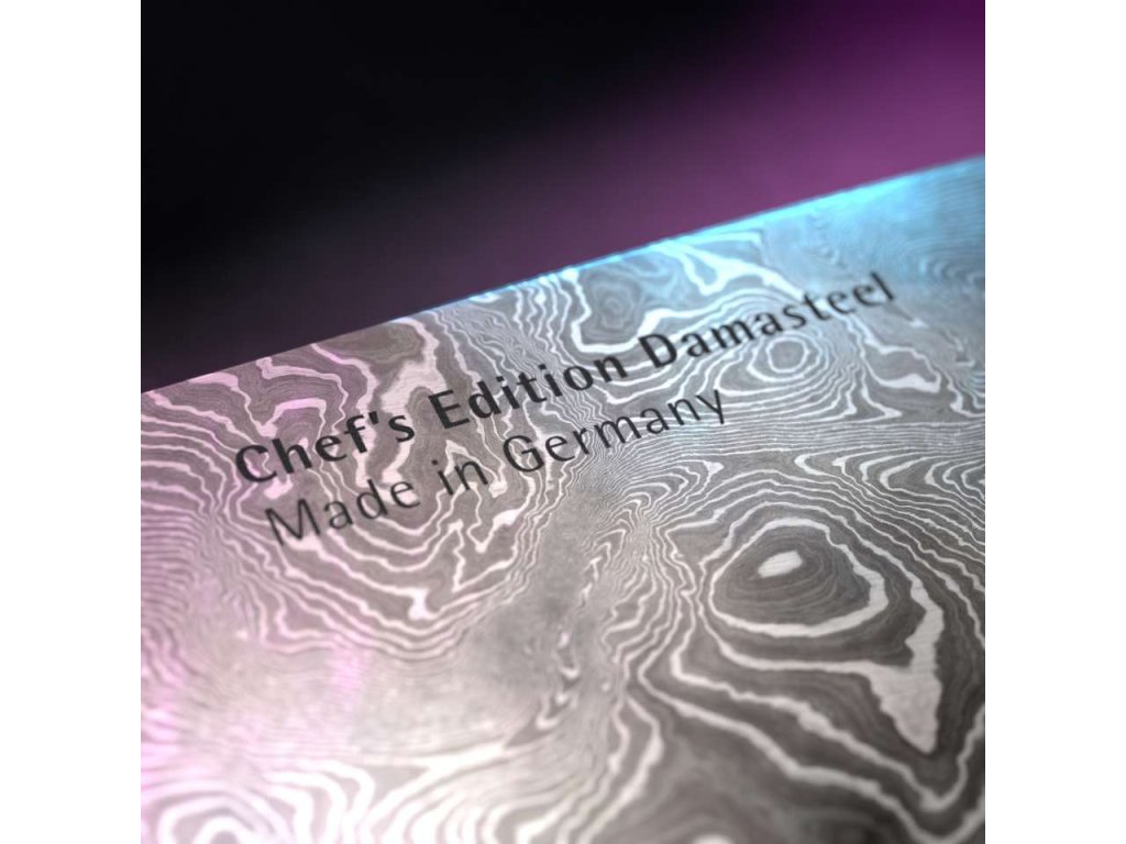 Chef's Edition Damasteel is ideal for slicing and cleaning vegetables, meat, herbs or nuts. The knife has one side wider for even filleting of fish. It is suitable for professional cooks, but also for amateur cooks.