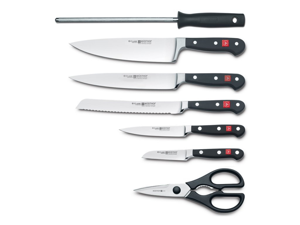 Knife block set CLASSIC, 8 pcs, with honing rod and scissors, dark wood, Wüsthof