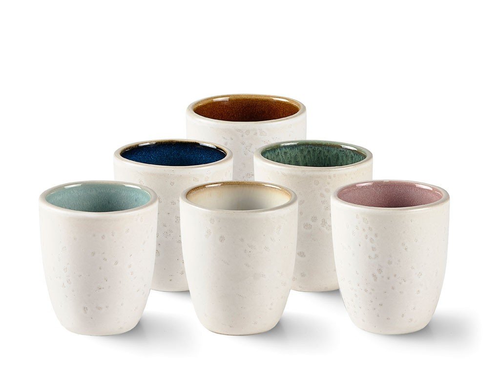 The set of 6 cups without handles with a volume of 100 ml from Bitz is particularly suitable for serving espresso. The mugs are made of stoneware. It boasts a glossy coloured glaze in various colours on the inside and a matt reactive glaze on the outside. It is created by hand so each piece is an original. Enjoying food and consciously perceiving it - that is the goal of the Danish manufacturer of the great Bitz stoneware range.