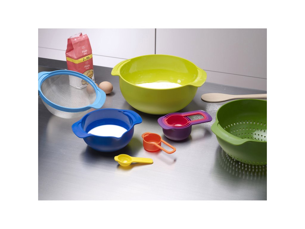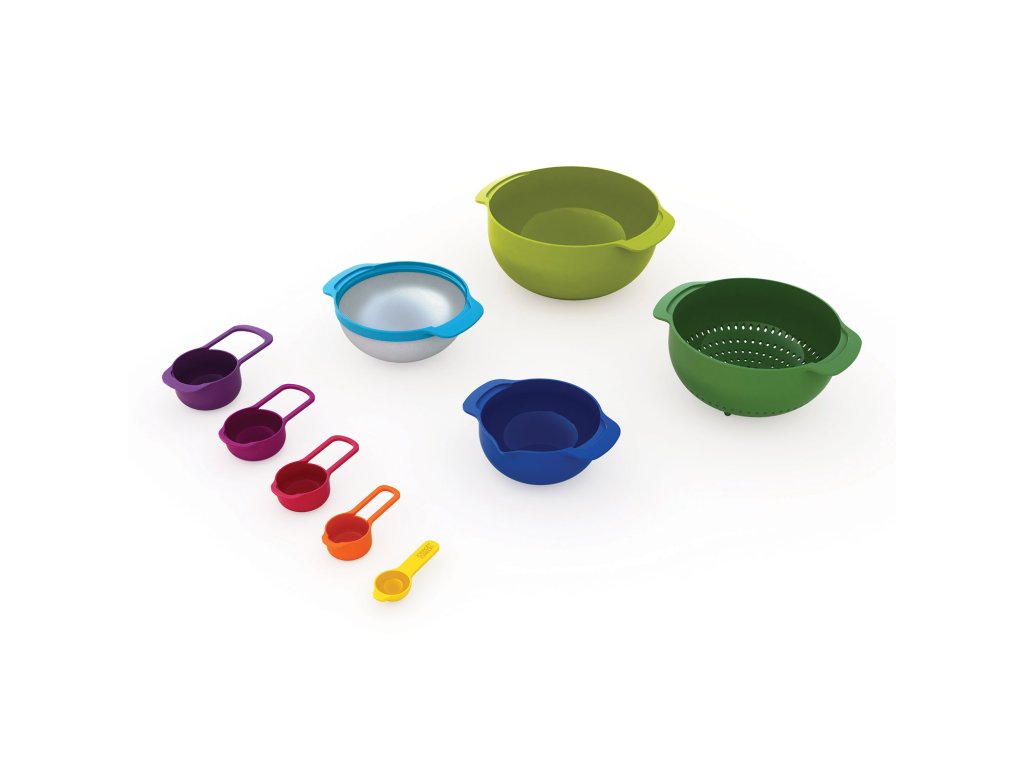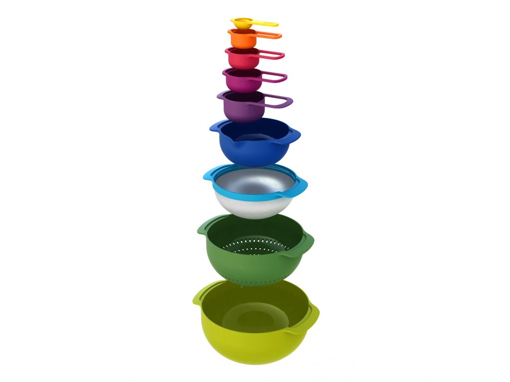 Kitchen bowl set NEST, 9 pcs, with measuring cups, stackable, multicolour, Joseph Joseph