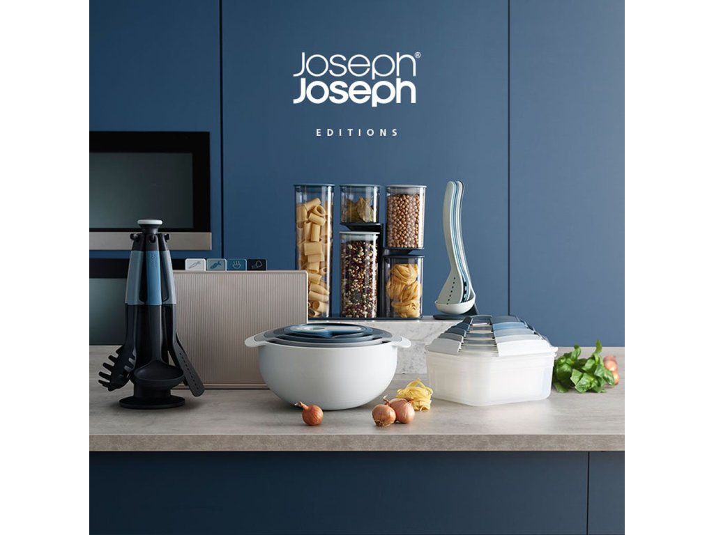 This handy Nest™ 9 Blue Sky set from Joseph Joseph includes a large and small bowl, a plastic and stainless steel colander, four measuring cups with handles (250 / 125 / 85 / 60 ml) and a plastic spoon (5 ml). All bowls and measuring cups are stackable, saving space in your kitchen. The largest bowl has a non-slip bottom. All bowls, colanders and measuring cups have practical handles for easy handling and are made of safe, BPA-free plastic. We deliver in a beautiful gift box.