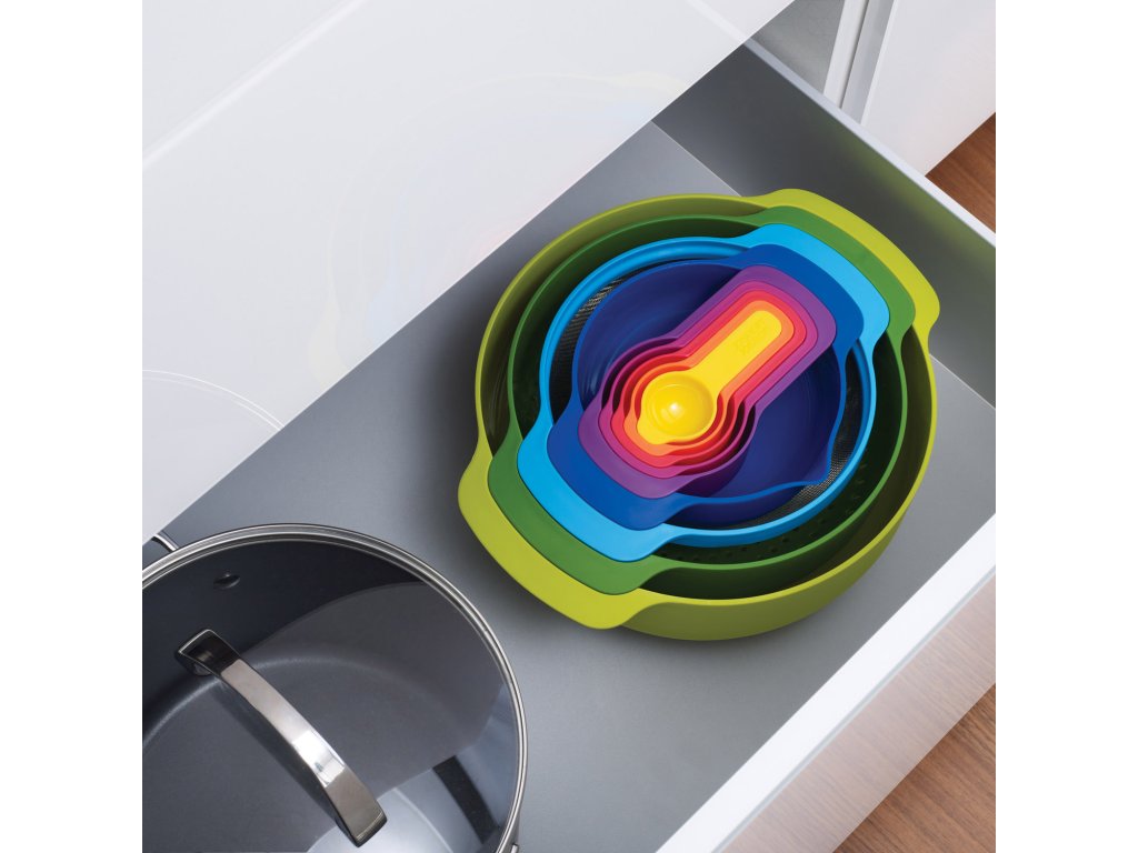 Kitchen bowl set OPAL NEST, 9 pcs, with measuring cups, stackable, Joseph Joseph