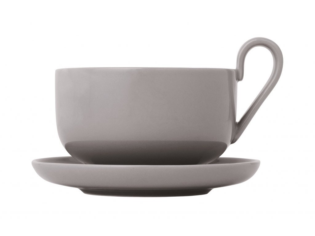 Tea cup with saucer RO, set of 2 pcs, 230 ml, warm grey, Blomus