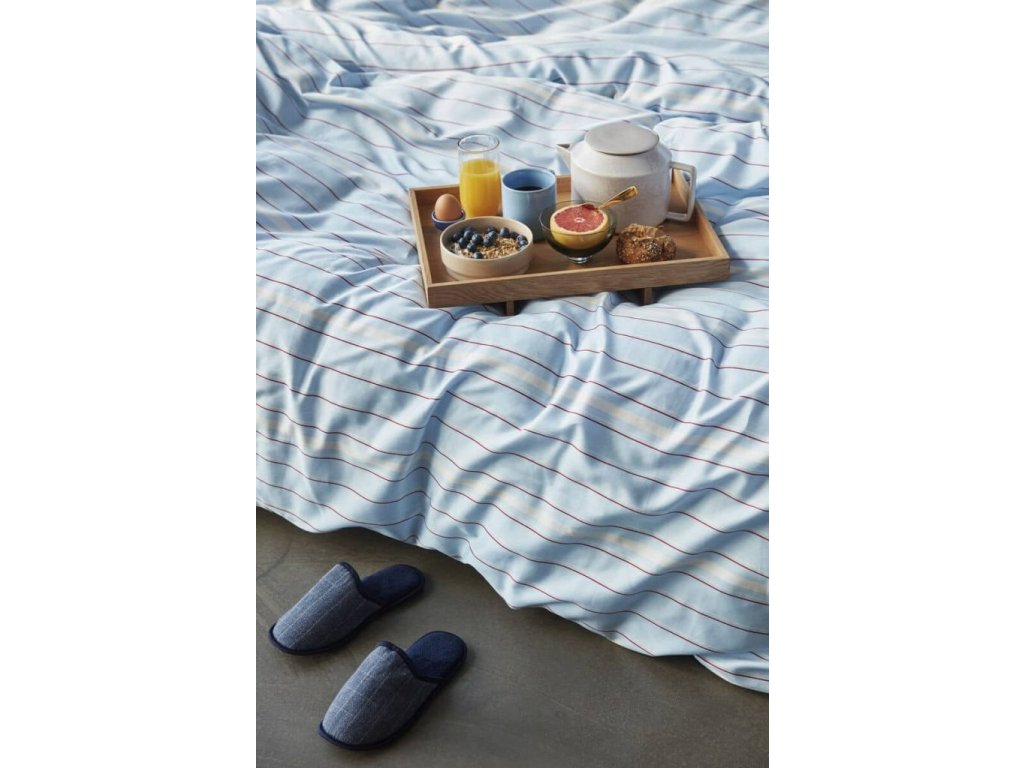 The unique colour combination of blue and red and a striped pattern create a fun and chic atmosphere in any bedroom. The bedding set offers comfort and ease not only thanks to a nice colour palette but also through its material which is a mix of cotton and sateen. It feels very nice on your skin and makes you want to stay in bed for the whole day. You have been warned!