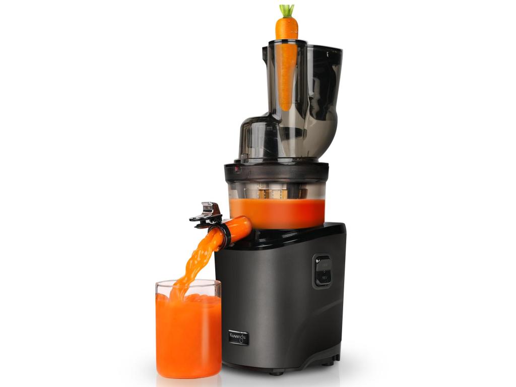 - The Kuvings juicer REVO830 is a modern device designed for convenient juicing, which allows you to insert whole pieces of fruit and vegetables without the need for their prior preparation.
