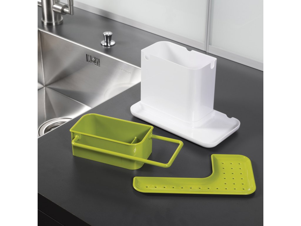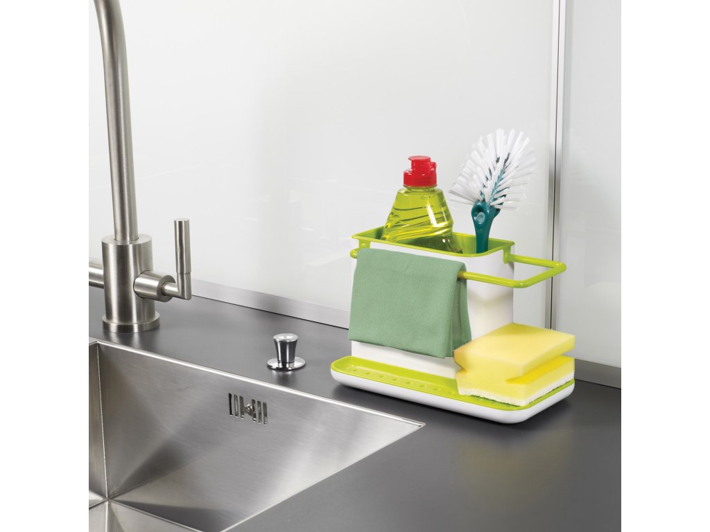 Keeping things tidy around the sink isn't easy, and sponges and rags are often left strewn around the bottom of the sink. Unhygienic practices allow bacteria to multiply, which should definitely be avoided in the kitchen. Elegant solutions with caddy stands are a spectacular solution. You will appreciate the perforated sponge compartment, the cloth bar and the storage compartment for detergent and brush. The set can be disassembled and washed in the dishwasher. Your sink will always be clean, your cloths dry and you will feel positive about the perfect organisation of your washing area.