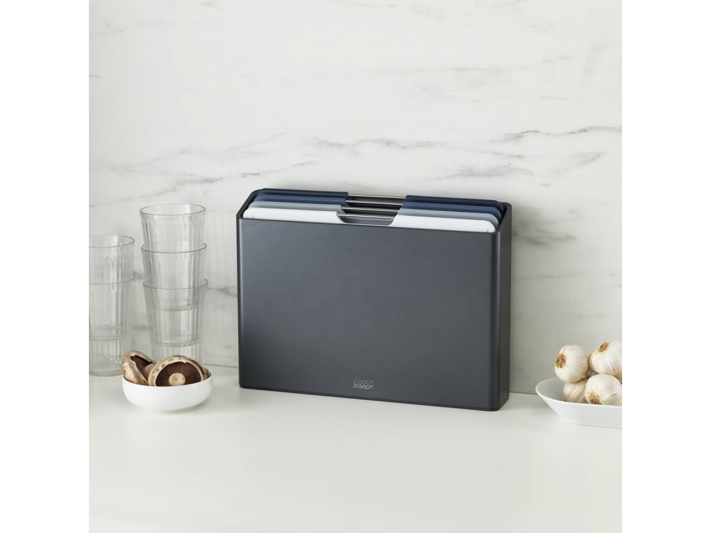 Cutting board set FOLIO regular, 4 pcs, with a stand, grey, Joseph Joseph