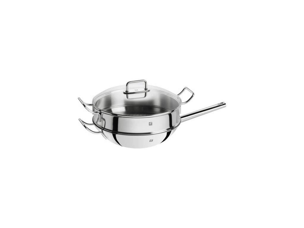 The ZWILLING® Plus steaming insert ⌀ 32 cm is suitable for all Zwilling Wok pans of the corresponding diameter. Ideal for steaming to preserve vitamins. Handling the insert is easy thanks to the large stainless steel handles on the sides. The handles remain cold. The insert is very easy to clean thanks to its glossy surface. It is dishwasher safe.