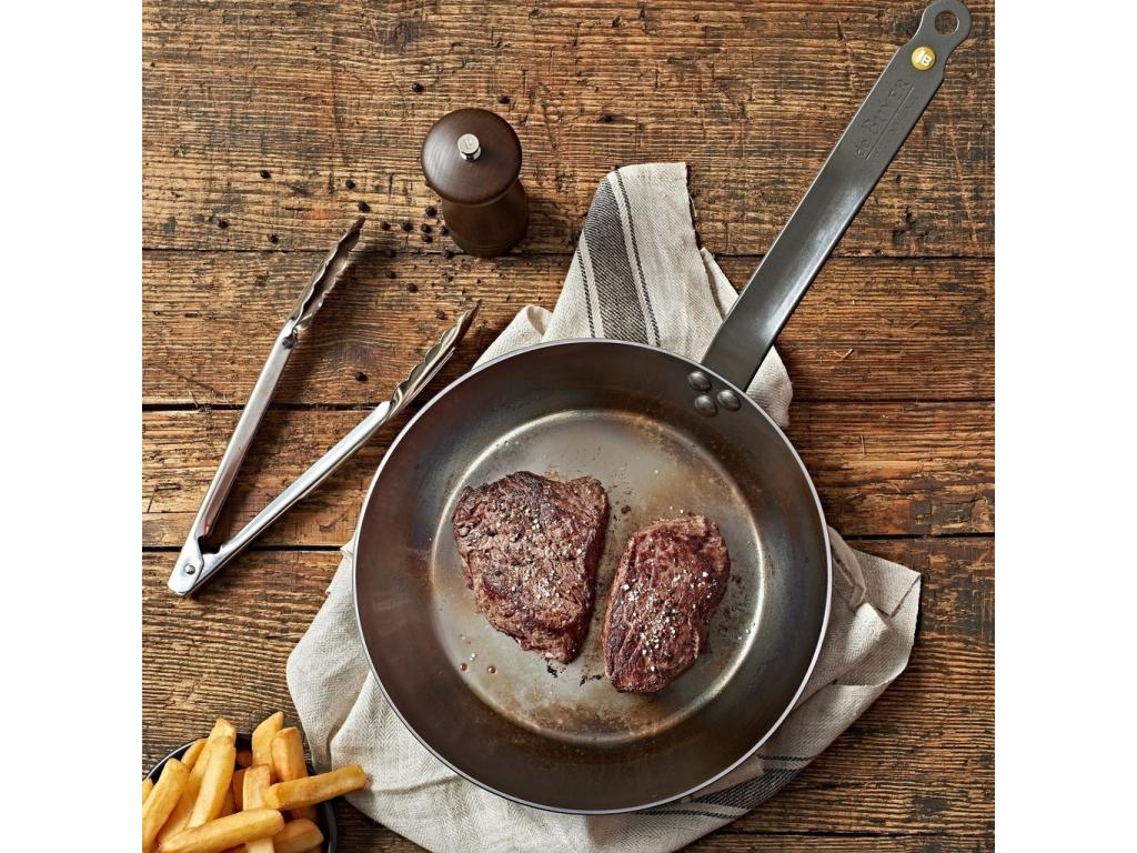 Mineral B is a series of steel pans from the French company de Buyer. Company de Buyer has a tradition dating back to 1830 and is globally recognized, especially in the professional sphere, where steel pans are very popular for their irreplaceable properties when roasting meat or vegetables. The Mineral B range of pans is made from high quality heavy gauge steel with a beeswax based finish. This protects them from oxidation and increases the natural non-stick properties of the pans which also improve with each use. The pans are designed for all types of cooking sources, including induction. Mineral B steel pans are 100% natural, ECO-logical and recyclable.
