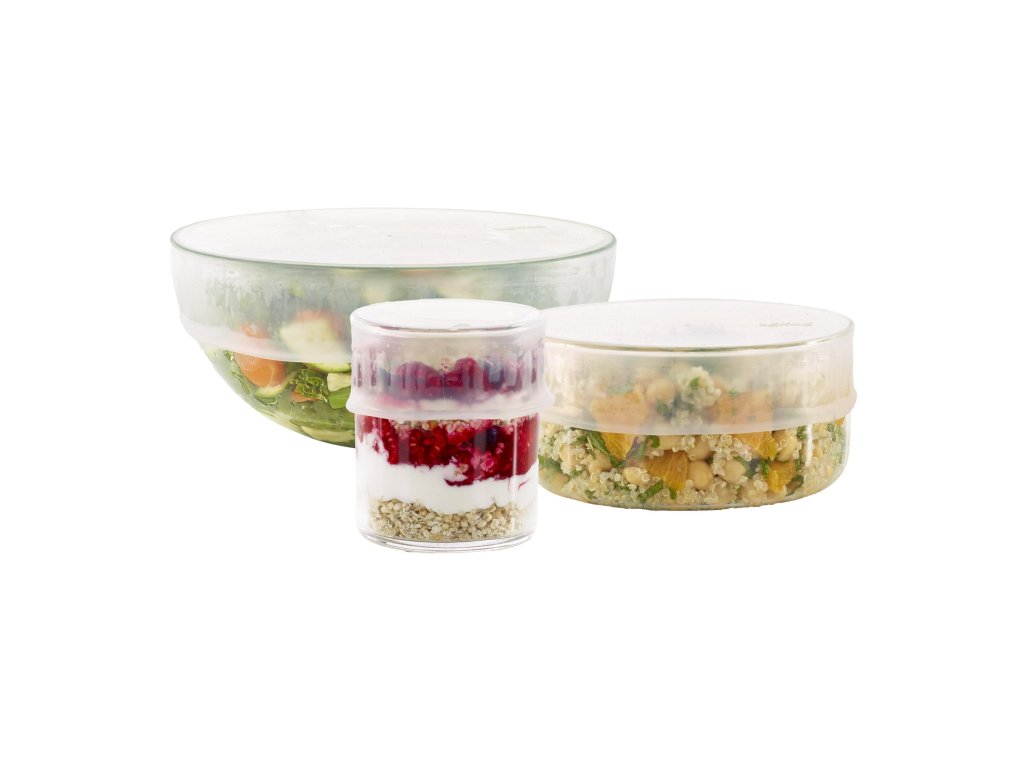 - This set of 3 reusable silicone lids Lékué is used to store food as a practical and environmentally friendly alternative to disposable packaging.