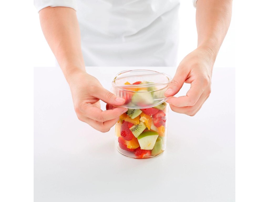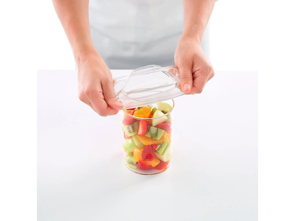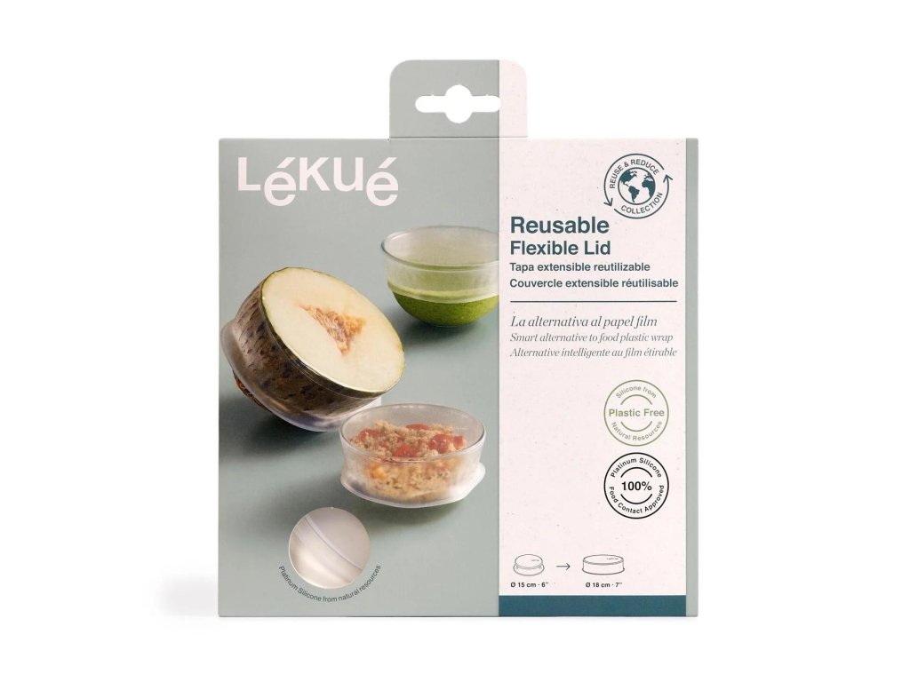 - This reusable silicone lid Lékué with a diameter of 15 cm is used to preserve food as a practical replacement for disposable packaging.