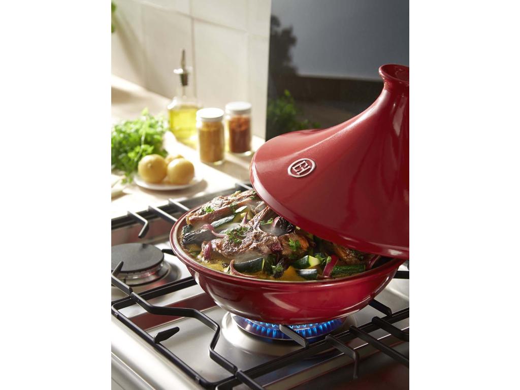 Tajine is a pot made of glazed ceramic with a pointed lid that allows the steam to circulate well and helps keep the ingredients tender and sufficiently moist. The container can be used either on the stove or in the oven. It is ideal for the preparation of Moroccan tajine, stews and all dishes that require a slow braising process to bring out their flavours.