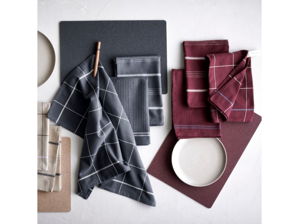 GAMMA tea towel by Danish brand Rosendahl is a great example of premium, elegant kitchen textiles. Available in many stylish colours - here in dark burgundy colour - measures 50 x 70 cm and is made of 100% organic cotton that is very absorbent, has a practical loop for hanging and can be washed up to 60°C.