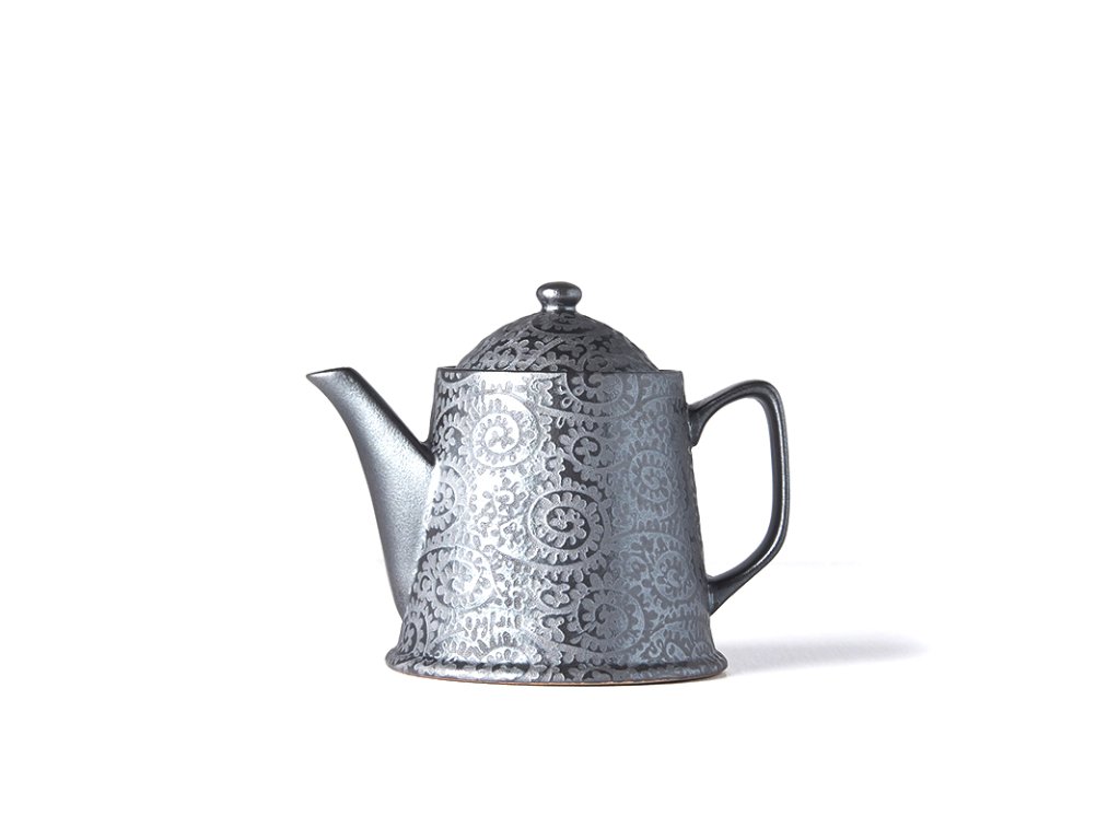 Teapot BLACK SCROLL 450 ml, ceramics, MIJ