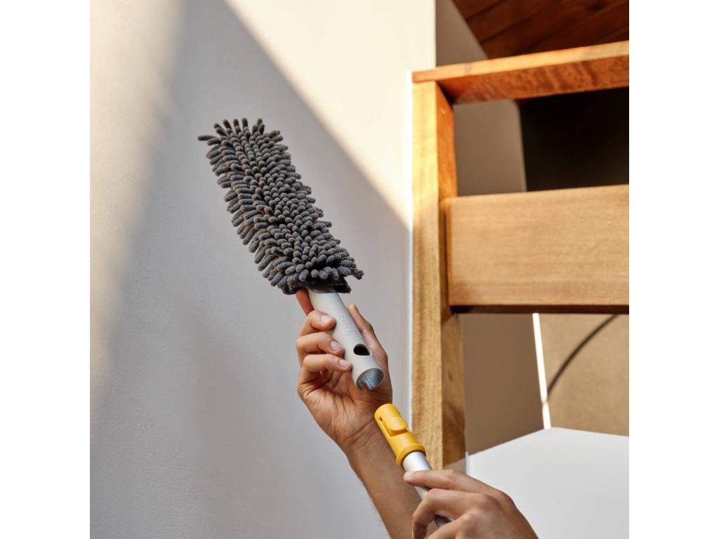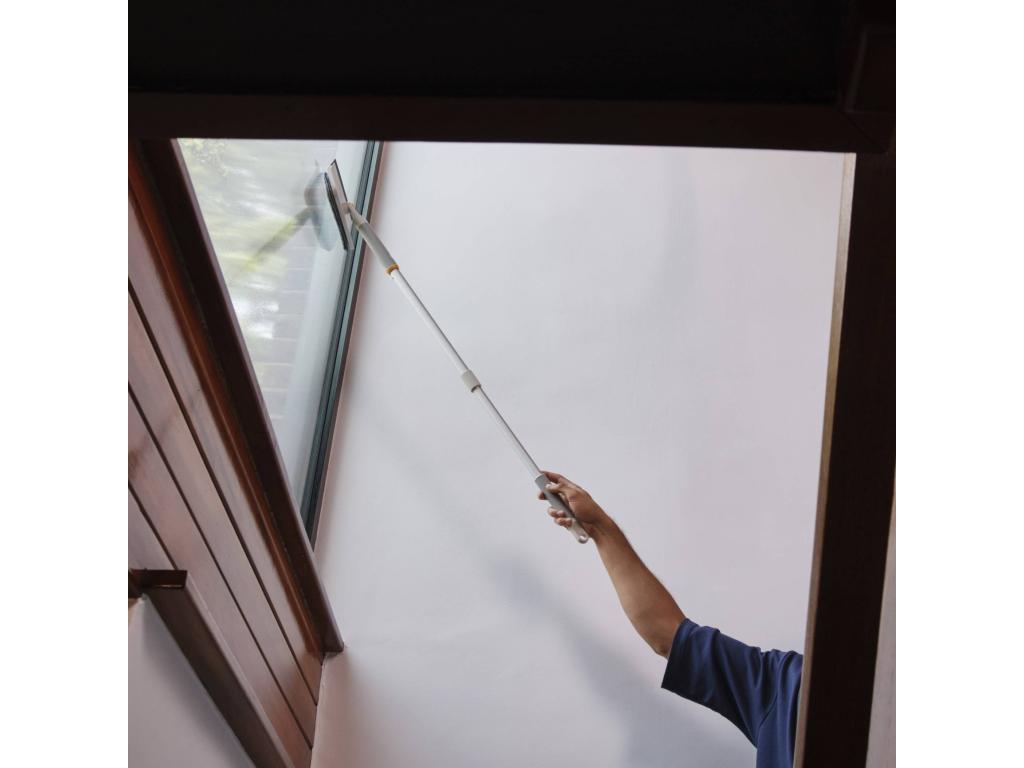 - It allows easy reach to ceilings, tops of windows, high cabinets, or distant corners without the need for step stools.