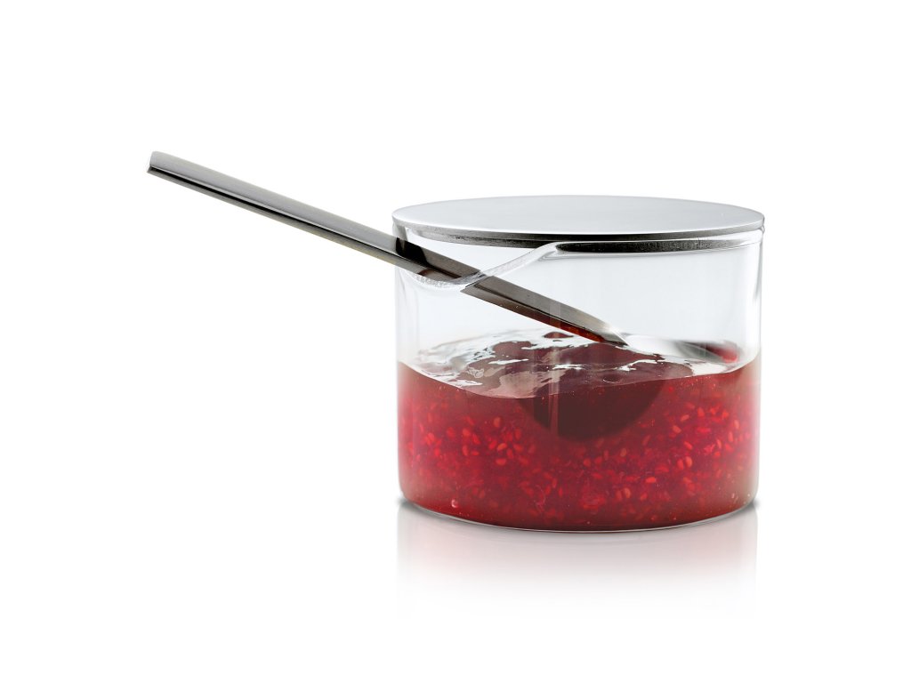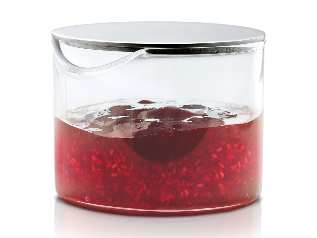 The glass jam jar boasts a clean design that makes it suitable for any kitchen. It makes perfect connection with other products from the BASIC series.