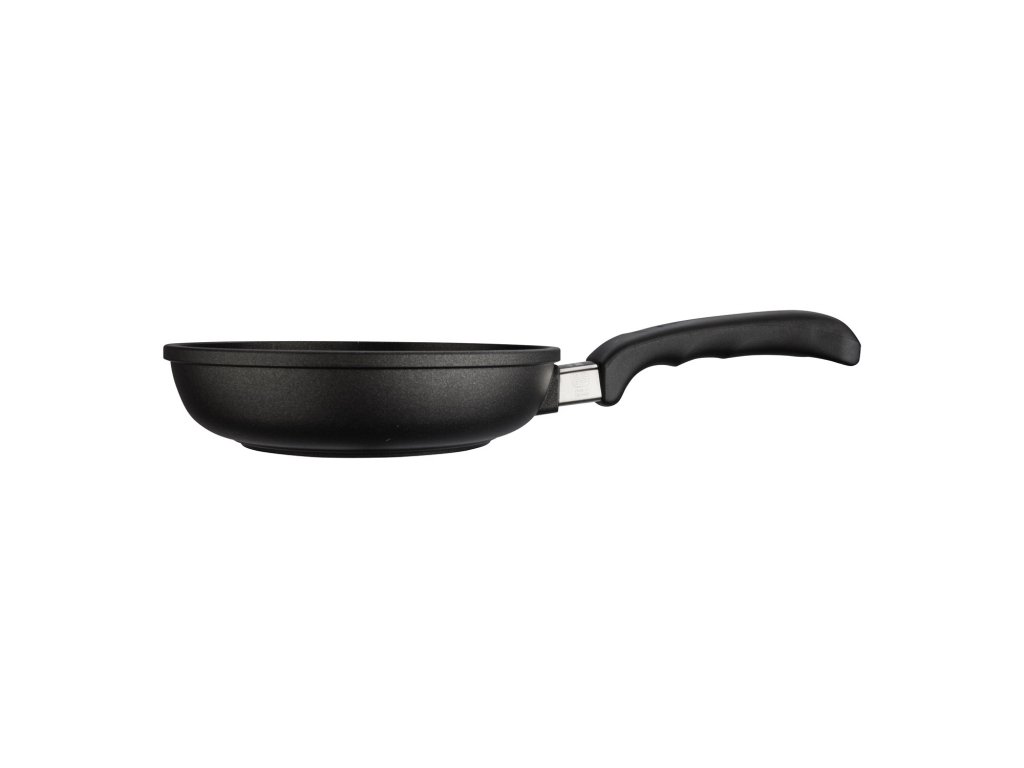 Comfortable grip is ensured by the ergonomic synthetic handle with anti-slip thumb grip and hanging hole. The supporting part of the handle is moulded into the casting of the pan. They form a single unit, which ensures a secure fit. Another advantage of the Titanium Keenwo series is the perfect heat distribution and accumulation. The pans can be used on all types of heat including induction, even for baking in the oven, up to 250 °C.