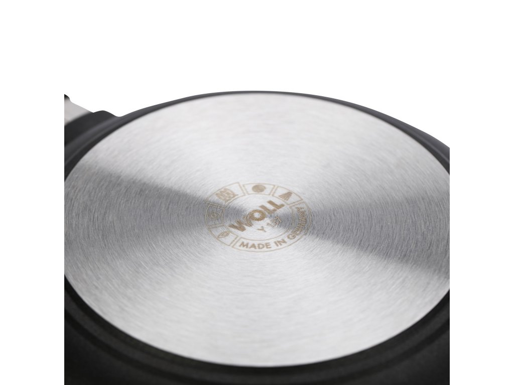 Thanks to a special manufacturing process, the high-quality non-stick surface can withstand dishwasher washing or even the use of metal kitchen tools. (However, for a longer life of your cookware, we recommend using more gentle wooden or silicone utensils.) WOLL's specially hardened, non-stick surface is proven for healthy cooking with little or no fat. It is safe and PFOA-free. The resulting dishes are so rich in vitamins. Thanks to its heat resistance up to 250 °C it is not only suitable for delicate foods, but also for frying at high temperatures. Titanium Nowo cookware also withstands temperature shocks very well, it can even be heated up rapidly without the use of fat. Thanks to its superior non-stick properties, the cookware is very easy to clean.