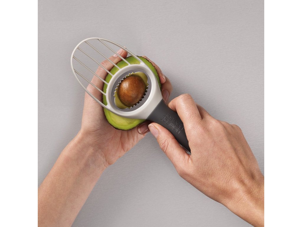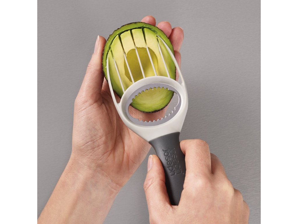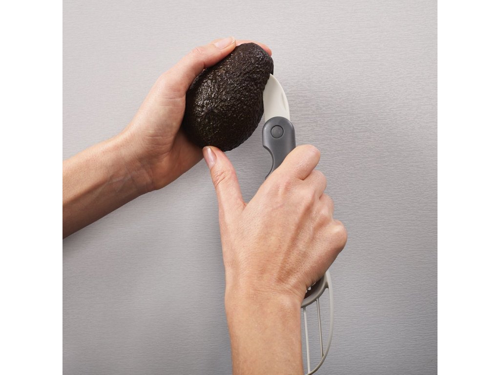 Duo is Joseph Joseph's innovative range of kitchen essentials that brings ingenious solutions to every kitchen. The range is carefully designed with an emphasis on simplicity, innovation, functionality and quality. Each product in this range is made from high quality materials and in a wide range of colours, so you can match them to your interior or other kitchen accessories and utensils. This range includes, for example, a practical tool that allows you to peel, cut, slice and slice avocados. The tool includes a folding plastic knife, stainless steel stone remover and slicer.