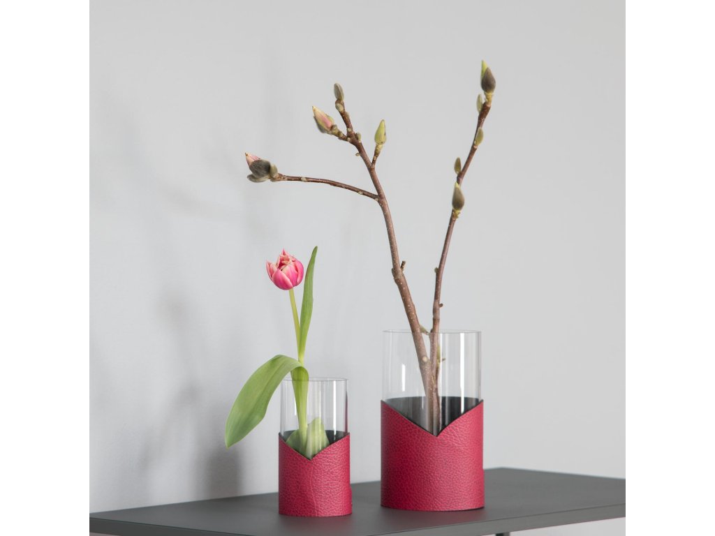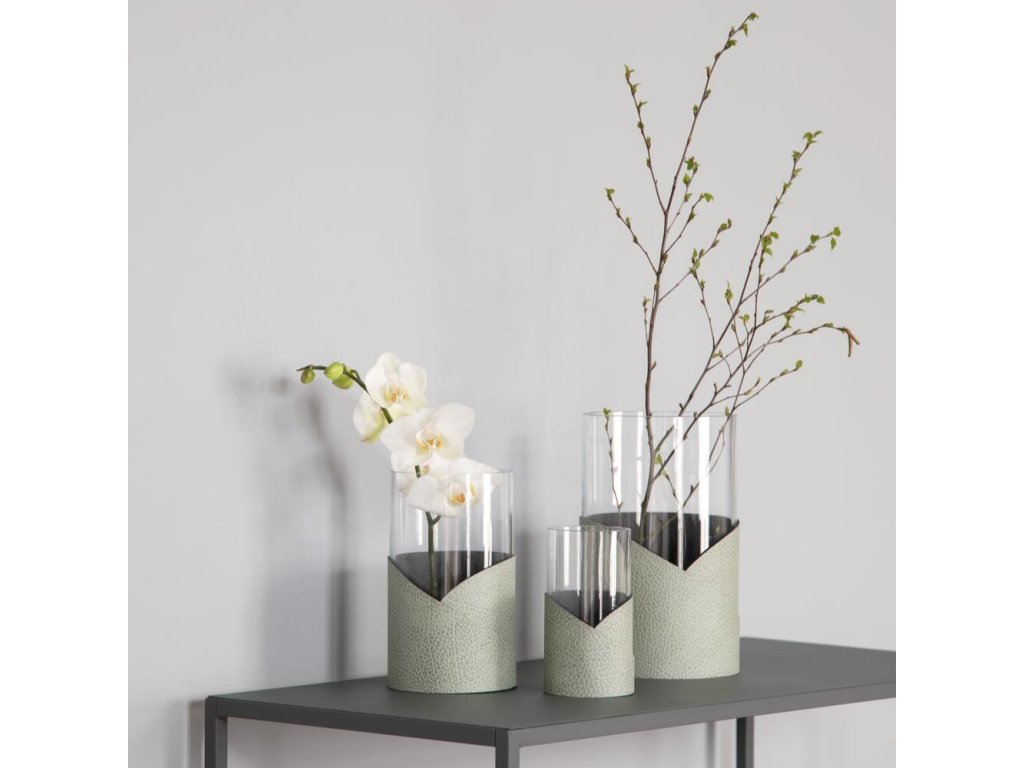 - made of high quality glass and finely decorated recycled leather strap, which gives the vase a stylish and modern look