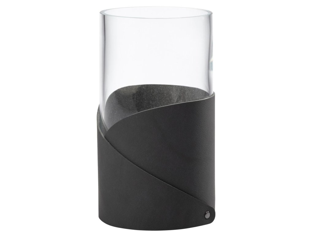 Vase FOLD NUPO 15 cm, anthracite, leather / glass, LIND DNA