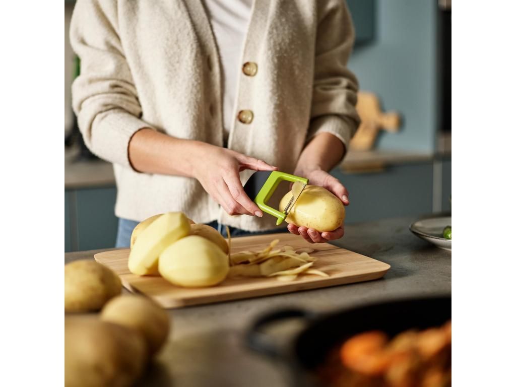 - The compact design facilitates handling when peeling smaller and larger pieces of vegetables and ensures precise guidance of every stroke.