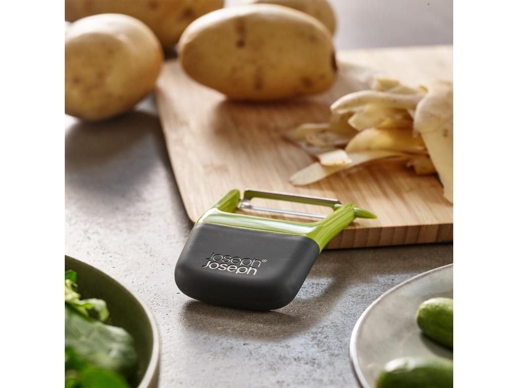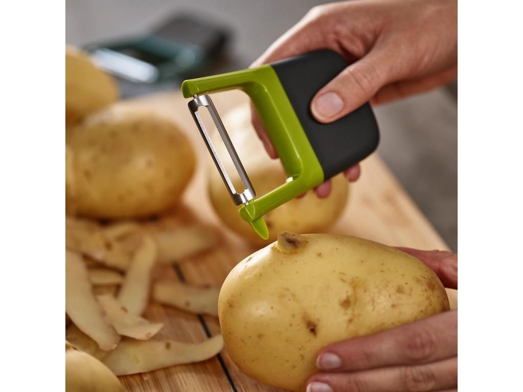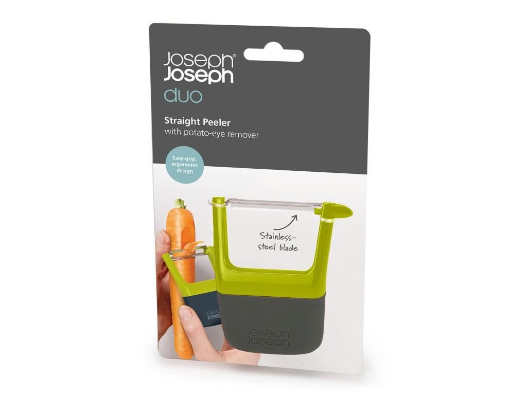 - The Joseph Joseph DUO straight peeler is a practical helper for quick and comfortable peeling of potatoes, carrots, cucumbers, and other vegetables for everyday cooking.