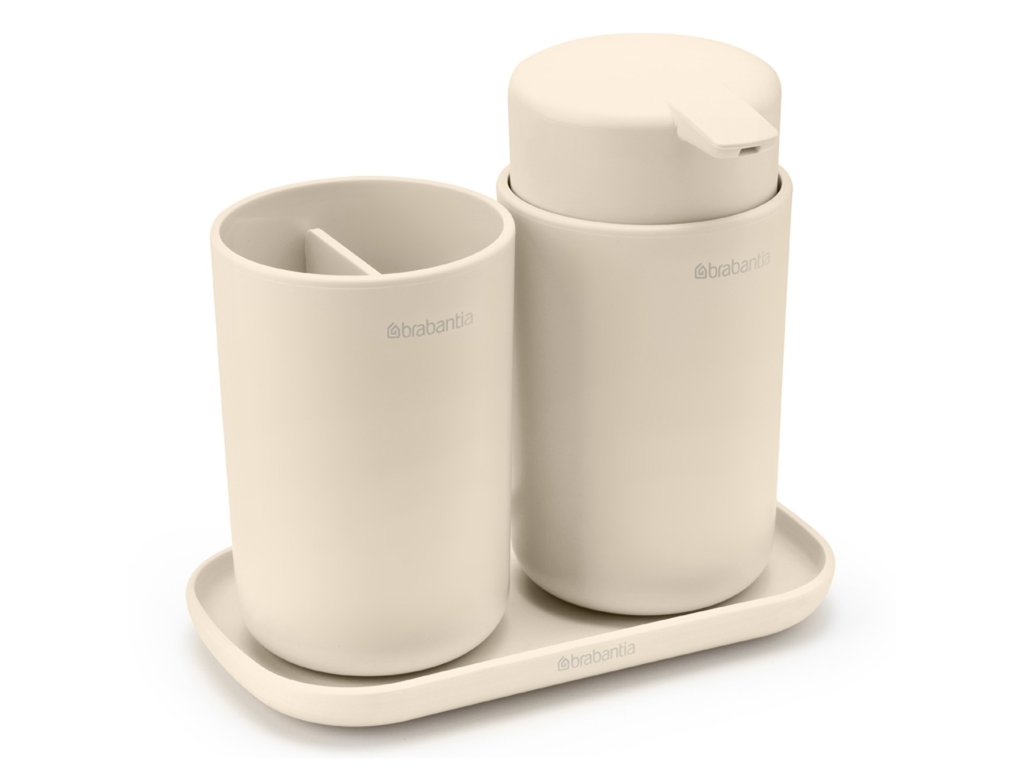 Liquid soap dispenser and toothbrush cup in a set RENEW soft beige, Brabantia
