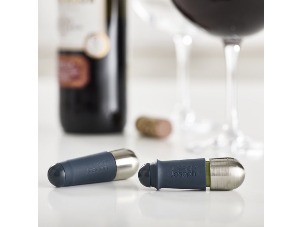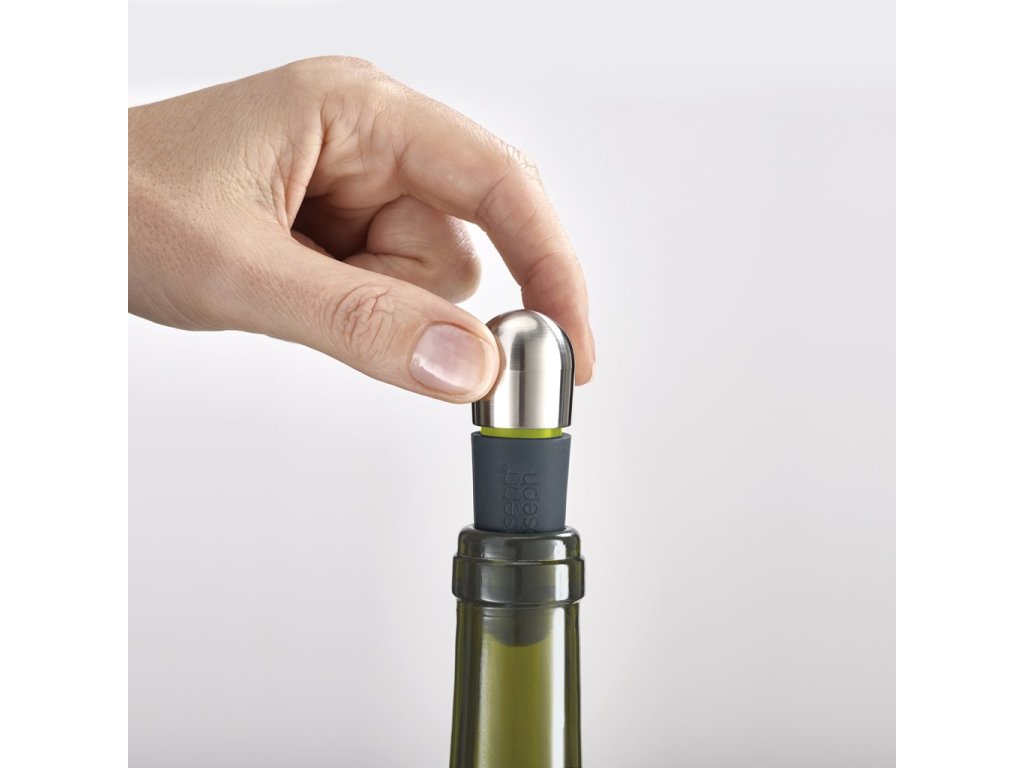 JOSEPH JOSEPH BarWise Twist-Lock stoppers reliably seal an unfinished bottle of wine. TWIST-LOCK mechanism seals the bottle airtight by turning the stainless steel part of the cap. When the bottle is airtight, a green ring is visible on the stopper. Turn the stainless steel part in the opposite direction to open the bottle. The stoppers are not intended for the closure of champagne and carbonated beverages. The set includes two stoppers.