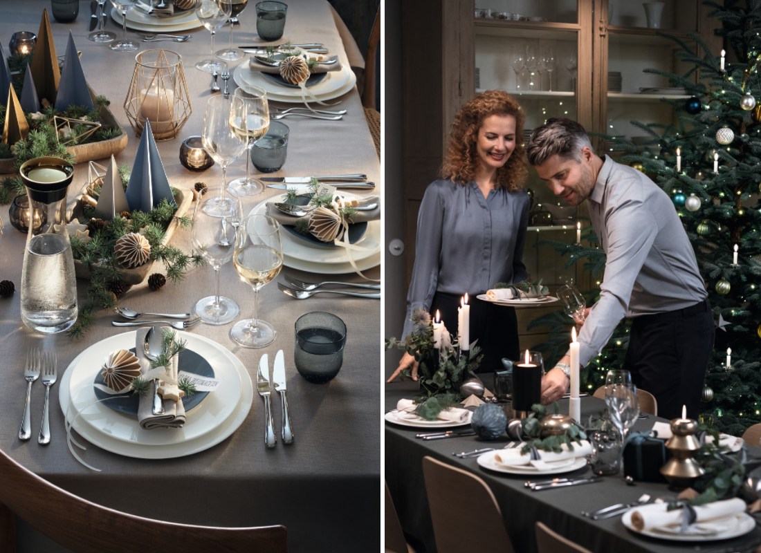 By adding a few accents in gold or silver, you will add a truly festive and luxurious character to the combination of grey and blue. Think about gold or silver decorations, cutlery or Christmas tree ornaments.